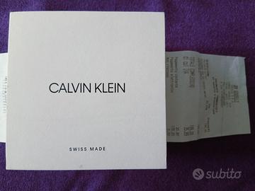 Orologio firmato Calvin Klayn NUOVO, mai usato. Acquistato da Joy Gioielli al prezzo di 199,00 euro (come riportato nello scontrino fiscale che ho pubblicato). L'orologio ha il cinturino in acciaio inox e il fondo del quadrante di colore grigio scuro. Mi e stato regalato a Natale e vendo per necessità imminente. Il prezzo è trattabile. Vendo personalmente all'acquirente NON SPEDIZIONE e NON PERDITEMPO. Grazie!!!