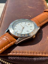 Vendo orologio Caravelle (by Bulova) vintage degli anni 1990-2000 in ottime condizioni e perfettamente funzionante Pila sostituita ad Aprile 2026 In omaggio 3 cinturini: 2 di pelle (nero e bianco) e un cinturino in cordura di colore verde militare. Unici difetti: segni di usura dati dal tempo e qualche leggero graffio Per altre foto e info contattami in privato Spedizione veloce in massimo 48H