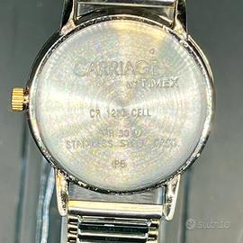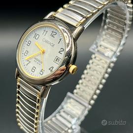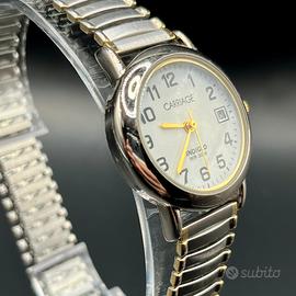Elegante orologio vintage Carriage by Timex, un classico intramontabile che unisce praticità e uno stile retrò sofisticato. Perfetto per chi cerca un accessorio affidabile con il fascino dei modelli di una volta. Caratteristiche principali: • Marca: Carriage by Timex. • Modello: Quartz con tecnologia Indiglo (il quadrante si illumina premendo la corona). • Cinturino: Elastico (Expansion Band) in acciaio inossidabile bicolore (silver e gold), molto comodo e adattabile a diverse misure di polso. • Quadrante: Bianco nitido con numeri arabi neri ben leggibili e datario a ore 3. • Resistenza all'acqua: WR 30M (resistente agli schizzi). • Fondello: Acciaio inossidabile (Stainless Steel Back). • Batteria: Nuova • Condizioni: Ottime condizioni estetiche, come da foto. Vetro e cassa ben conservati. Valore di Mercato Scatola: Non Originale, colore a scelta (Bianco, nero o Blu) Tag #Timex #CarriageByTimex #Indiglo #OrologioVintage #VintageWatch #OrologioDonna #OrologioUomo #ClassicStyle #RetroWatch #StainlessSteel #SilverAndGold #ExpansionBand #OrologioAnalogico #TimexVintage