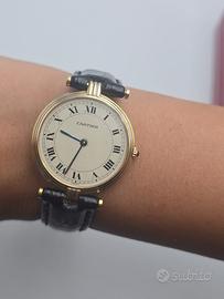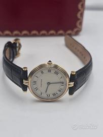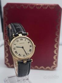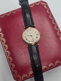 Splendido orologio Cartier modello Must Vendôme in vermeil ref 881003 con cinturino in pelle e meccanismo al quarzo, fibbia oroginale Cartier Dorata.
