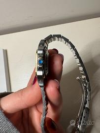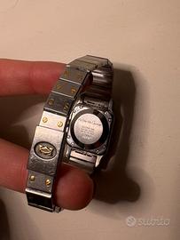 Splendido ed intramontabile Cartier Santos originale degli anni '80, appartenuto a mia nonna e conservato con estrema cura. Un pezzo di storia dell'orologeria che unisce il lusso dell'oro alla resistenza dell'acciaio, perfetto per chi cerca un accessorio di classe che non passa mai di moda. Dettagli principali: • Modello: Cartier Santos Galbée. • Periodo: Anni '80. • Materiali: Acciaio e Oro (Bicolor). • Quadrante: Classico bianco con numeri romani e lancette a forma di gladio in acciaio azzurrato. • Condizioni: Eccellenti, tenuto in modo impeccabile. Funzionante al 100%. • Stile: Un'icona di design "industrial chic", estremamente versatile sia per outfit eleganti che casual. Perché sceglierlo: L'orologio non è solo un accessorio, ma un investimento. Le linee squadrate e le iconiche viti a vista sulla lunetta e sul bracciale lo rendono immediatamente riconoscibile. Essendo un pezzo di famiglia, è stato trattato con il massimo riguardo. Nota sul corredo: Trattandosi di un pezzo di famiglia con molti anni di storia, non sono purtroppo più disponibili la scatola originale e la ricevuta d'acquisto.