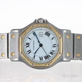 Cartier Santos Octagon acciaio e oro referenza 2966 Anno 1985 circa 30mm movimento automatico polso 18cm Quadrante bianco con numeri romani Corona originale Cartier con zaffiro Cassa acciaio e oro Bracciale acciaio e oro Fondello acciaio con vite SU RICHIESTA: possibilità di effettuare kit estetico su cassa e bracciale condizioni buone (segni di usura evidenti) SENZA SCATOLA E SENZA GARANZIA