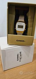 Vendo orologio Casio originale - linea vintage - colore beige con dettagli dorati, usato max 3 volte, in perfette condizioni. Funzionamento impeccabile, leggero e dal design elegante.