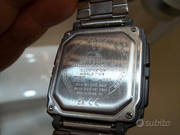 Cassa in acciaio e resina da 39 mm. Quadrante digitale illuminato. Bracciale in acciaio inox con chiusura di sicurezza. Vetro minerale. Dimensioni 48,3mm x 39mm x 12,5mm. Peso ca. 82 g. Impermeabilità 5 bar.