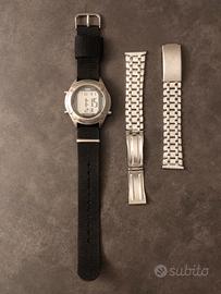 Vendo raro Casio Edifice EFD-101 (Modulo 2470) in condizioni molto buone. Orologio in acciaio, solido e indistruttibile. Appena sostituito vetro, display nitidissimo e senza graffi. Batteria nuova, pronto all'uso. Oltre al cinturino NATO nero nuovo (look moderno e tecnico) fornisco bracciale in acciaio coerente con l'epoca per un look classico. Funzione Illuminator (luce) perfetta. Un pezzo unico per chi cerca un digitale vintage perfettamente funzionante in tutte le sue funzioni. Prezzo trattabile Scambio valutabile con Casio Seiko Citizen Orient Archs Bulova Pryngeps timex tissot vintage cronografo meccanico quarzo digitale o automatico anche da sistemare sempre vintage