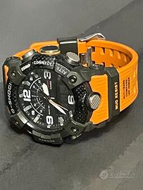 Splendido Casio Mudmaster, edizione con cinturino orange, cassa inserti in carbonio CARBON CORE GUARD. Funzione bluetooth: si connette allo smartphone con App “CASIO WATCHES” che permette: Regolazione orologio automatica , Impostazione semplice dell'orologio, Ora internazionale di circa 300 città,Dati Life Log, Registro missione,Indicatore di posizione, Location Memory,Personalizzazione della modalità/commutazione del display, Calibrazione automatica dell'altitudine. Scatola originale.