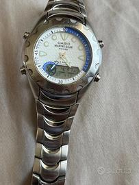 Orologio casio usato WR 100M, in ottime condizioni, bracciale acciaio: led, neobrite, visualizzazione fasi lunari, calendario, visualizzazione maree, formato 12/24 ore, doppio orario, vetro minerale, cronometro, yacht time, allarme segnale orario.