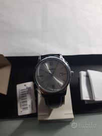 Orologio Casio da polso per uomo, annuncio pubblicato da rivenditore ufficiale che rilascia garanzia sul prodotto a due anni al momento dell'acquisto, dimensioni orologio: 44 x 37 x 9.6 mm peso di 44 grammi con cinturino in pelle colore nero, quadrante color grigio con numeri romani e segna data, impermeabile con vetro minerale, orologio come da foto con scatola etichetta e certificato casio