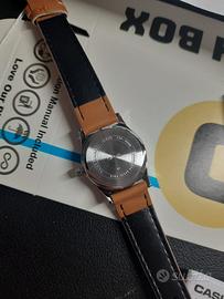 Orologio casio da polso per donna, annuncio pubblicato da rivenditore ufficiale che rilascia garanzia di acquisto di due anni applicata al momento dell'acquisto, dimensioni orologio: 30.4 × 25 × 9.2 mm con peso di 22 grammi, cinturino in pelle colore beige con movimento al quarzo impermeabile, quadrante bianco con segna data e giorno della settimana, vetro minerale, orologio nuovo come da foto con scatola etichetta e garanzia casio
