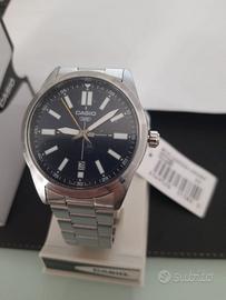Orologio Casio da polso per uomo, annuncio pubblicato da rivenditore ufficiale che rilascia garanzia sul prodotto a due anni al momento dell'acquisto, dimensioni orologio: 48 × 41 × 9.6 mm peso di 105 grammi in acciaio inossidabile con cinturino a tripla chisura , resistente all'acqua vetro minerale con movimento al quarzo durata 3 anni, orologio come da foto con scatola etichetta e certificato casio