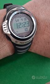 Casio Pro Trek PRG-100a carica solare. Condizioni:L'orologio è integro, ma la batteria solare attuale è esausta e non carica al 100%. Funzionamento:Con la batteria attuale mostra l'ora ma non attiva altimetro e barometro.Testato con pila standard: l'orologio e i sensori funzionano perfettamente. Nota:Per il pieno ripristino basta sostituire l'accumulatore solare (modello CTL1616). Venduto come visto e piaciuto.