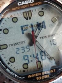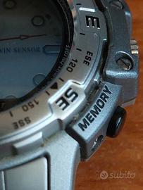 Prestigioso orologio Casio PRO TREK PRT 500 MODULO 1376 Originale Made Japan Tecnologia Twincept Visualizzazione digitale sovrapposta alle lancette Twin sensor ALTIMETRO BAROMETRO TERMOMETRO resistenza all'acqua fino a 100 metri Retroilluminazione Cronometro Sveglia Datario Cassa mm.50 spessore mm.11 Fondello in acciaio inossidabile Caricata nuova batteria al litio CR2016 durate tre quattro anni