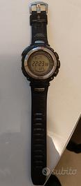 Ultimo della serie in mio possesso. Orologio Casio pro trek prw - 1500, water resistant 20 bar, radiocontrollato, solare, con altimetro, barometro, bussola, maree, illuminazione, conservato in modo maniacale, senza alcun graffio. Cinturino originale e anche scatola di confezione originale. Vendo per inutilizzo. Prezzo 90 euro.
