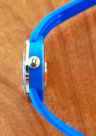 Le sue caratteristiche sono: cassa in acciaio da 42mm, ghiera fissa con le immagini del "logo BATMAN", quadrante argentè con i loghi di Batman bianchi, vetro zaffiro antigraffio ed antiriflesso, lancette delle ore e dei minuti fluorescenti, lancetta dei secondi di colore rosso, corona logata, water resistant 30 metri, fondello serrato con 4 viti, cinturino in gomma blu con i loghi Batman bianchi, chiusura logata ad ardiglione e movimento "eta swiss made"