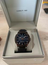 Cerruti 1881 Acquistato qualche anno fa nel 2018/19 full set. Acquistato in un noto sito di vestiti e accessori e un ottimo modello di designe, cinturino in pelle di buone qualità con chiusura a deployante, usato molto poco in ottime condizioni. Sportivo ed e legante 10 atm lo si può utilizzare in diversi contesti, ottime finiture della cassa, indica giorno data e orario in 24h per sapere se l’orario e giornaliero o notturno, movimento al quarzo miyota.