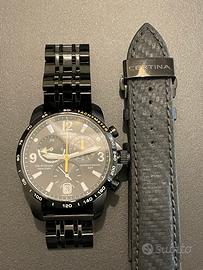 Orologio Certina DS Podium, cassa in acciaio 42mm, cinturino in acciaio nero, funzioni: chronografo, gmt e datario, movimento al quarzo. L’orologio viene venduto con un secondo cinturino originale Certina e la sua chiusura deployante