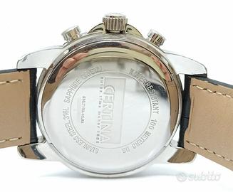 Orologio Certina DS podium precidrive Swiss Made Cassa da circa 42 mm, corona esclusa dalla misurazione Data ad ore sedici Vetro zaffiro antigraffio privo di graffi Fondello a scatto Movimento svizzero al quarzo Funzione cronografica Usato con segni di utilizzo Funzionante senza relativo corredo