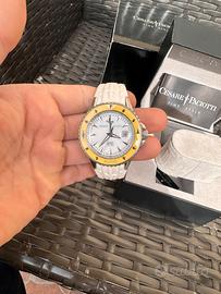 Orologio Cesare Paciotti Deep Fall Automatico – Sportivo Subacqueo 200m Vendo splendido orologio Cesare Paciotti della collezione Deep Fall, dal design sportivo ed elegante, perfetto sia per uso quotidiano che per occasioni speciali. 🔹 Caratteristiche principali: •Movimento automatico (no batteria, si ricarica con il movimento del polso) •Cassa in acciaio con ghiera dorata •Quadrante bianco con iconico simbolo del pugnale Paciotti •Impermeabile fino a 200 metri (20 ATM) – ideale anche per immersioni •Cinturino in silicone bianco morbido e resistente, con logo in rilievo •Stile sportivo/luxury molto riconoscibile 🔹 Condizioni: usato veramente poco, condizioni pari al Nuovo 🔹 Perfetto per: •Collezionisti •Amanti degli orologi automatici •Regalo elegante e originale 📦 Spedizione veloce e imballo accurato. Orologio Cesare Paciotti Deep Fall Automatico – Sportivo Subacqueo 200m Vendo splendido orologio Cesare Paciotti della collezione Deep Fall, dal design sportivo ed elegante, perfetto sia per uso quotidiano che per occasioni speciali. 🔹 Caratteristiche principali: •Movimento automatico (no batteria, si ricarica con il movimento del polso) •Cassa in acciaio con ghiera dorata •Quadrante bianco con iconico simbolo del pugnale Paciotti •Impermeabile fino a 200 metri (20 ATM) – ideale anche per immersioni •Cinturino in silicone bianco morbido e resistente, con logo in rilievo •Stile sportivo/luxury molto riconoscibile 🔹 Condizioni: (aggiungi qui: nuovo / usato poco / segni leggeri ecc.) 🔹 Perfetto per: •Collezionisti •Amanti degli orologi automatici •Regalo elegante e originale 📦 Spedizione veloce e imballo accurato.