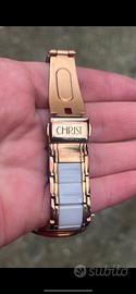 Orologio da polso del famoso marchio Christ. Color bronzo dorato, con inserti in ceramica. Meccanico a carica automatica. Incastonato con zirconi. Scatola di marca. Ottime condizioni - vedi foto.
