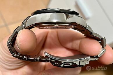 Vendo orologio marca Chronotech modello A530 in acciaio pvd nero, referenza CT.7169M/12M, vetro zaffiro antigraffio e antiriflesso, ghiera girevole unidirezionale con numeri lucidi a rilievo, movimento al quarzo, fondello e corona serrati a vite per una resistenza all’acqua fino a 100 metri, indici e sfere luminescenti al buio, diametro cassa 45mm esclusa corona, altezza cassa 13mm, distanza tra le anse 24mm, lug to lug 52mm. Bracciale in acciaio inox che rastrema a 20mm alla chiusura deployante. Orologio NOS nuovo fondo di magazzino senza un graffio, perfettamente funzionante con batteria nuova appena sostituita. mai usato, messo solo a misura del mio polso il bracciale per provarlo. Possibilità di spedizione in tutta Italia. Non faccio scambi o permute di nessun tipo. Per ulteriori informazioni e foto contattatemi pure. Disponibili tutte le maglie del bracciale, tag originale e certificato di garanzia valevole fino a Novembre 2026. Prodotto originale Chronotech.