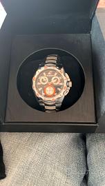 Vendo orologio ChronoTech Active originale, modello chronografo sportivo con cassa in acciaio inox silver, quadrante nero con accenti arancioni, bracciale in acciaio. È nuovo, mai usato, completo di scatola originale e istruzioni.