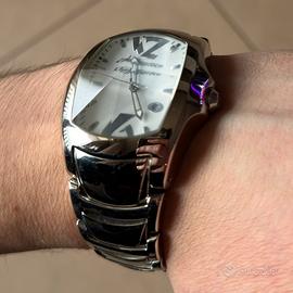 Chronotech CT.7896M/09M acciaio inox integrale, cassa tonneau, quadrante silver, movimento al quarzo. Resistente all’acqua 3ATM. Conservato nella scatola originale dal 2009. Condizioni ottime. Btteria da sostituire. Fondello con leggeri segni superficiali come da foto. Dotazione completa: scatola, manuale, certificato di garanzia, maglie extra. Ref: CT.7896M/09M · Serial: 803310087395 Hologram di autenticità sul fondello. Spedisco in 24h lavorative esclusi festivi, spedizione tracciata.