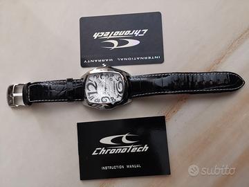 Vendo orologio Chronotech utilizzato pochissimo, ottimo design, vetro prismatico, cinturino in pelle, cassa in acciaio, con datario, completo di astuccio originale.