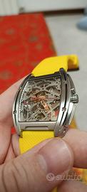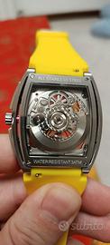 vendo orologio Ciga Design Z series, vincitore del "german design award 2020", full set, ottime condizioni, L'orologio presenta un quadrante scheletrato in acciaio inossidabile con un vetro zaffiro Tonneau che consente la visualizzazione del movimento meccanico dell'orologio. Inoltre, l'orologio è dotato di un cinturino in pelle e silicone che si adatta perfettamente a qualsiasi polso + un cinturino giallo in silicone.L'orologio è un orologio meccanico automatico, il che significa che si carica automaticamente con il movimento del polso. Ciò elimina la necessità di cambiare le batterie e garantisce che l'orologio funzioni sempre correttamente.