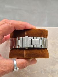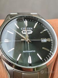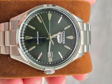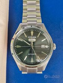 Orologio automatico Citizen C7, riedizione moderna del Crystal 7 degli anni 60. Cassa 40mm,movimento myota 8200,quadrante verde soleil spettacolare,finestra ettagonale a ore 12 per il giorno della settimana. Segnalo per correttezza solo un lieve segno sul vetro a ore 10 circa,che non si vede assolutamente con l'orologio al polso. Indossato solo un paio di volte,bracciale perfetto. Astenersi affaristi e perditempo,grazie