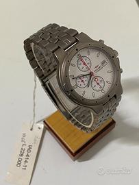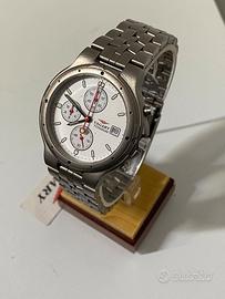 Il quadrante è di colore bianco con dettagli in argento e lancette rosse.