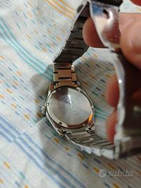 orologio da polso Citizen eco-drive con datario completamente in acciaio a carica luce infinita 180 giorni di autonomia. completo di scatolo e maglie del cinturino aggiuntive. l'orologio funziona perfettamente è estremamente preciso. ha solo un graffio sul vetro zaffiro sul lato 12 come si vede da foto e il cinturino con segni di usura essendo un orologio usato tutti giorni per il resto e perfetto.