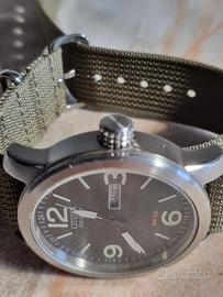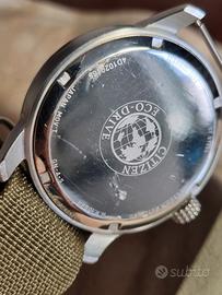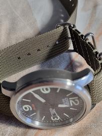 Cassa in acciaio inossidabile e cinturino tipo "NATO" in tessuto tecnico verde oliva, molto resistente e lavabile, NON Citizen !!
