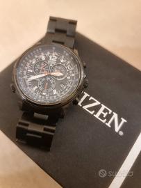 Vendo orologio Citizen Pilot E660 radiocontrollato Eco Drive crono versione Black cioè nero acquistato lo scorso anno. Fornisco scatolo ma NON garanzia per quanto l'orologio funzioni perfettamente e sia in ottime condizioni come visibile dalle foto. Vendo perché regalo non più gradito....