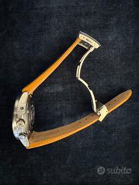 Quadrante color Cognac, Cinturino originale Nuovo in vero cuoio con impunture filo chiaro e chiusura Acciaio. Accumulatore Nuovo