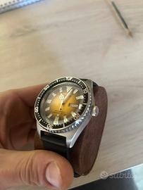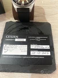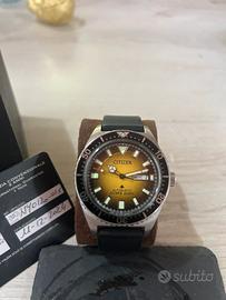 Citizen promaster marine Modello skindiver della casa nipponica diverso dal classico promaster. full set in ottime condizioni nessun segno sulla cassa e sulla ghiera lucida tranne uno molto piccolo vicino al dot a ore 12, l’ho acquistato con il suo cinurino ma per me un po’ scomodo l’ho sostituito con uno in gomma, quadrante bellissimo degradè, movimento della serie 8000 certificato ISO25,41mm di diametro 13,7 di spessore corona a vite 20atm di impermeabilità