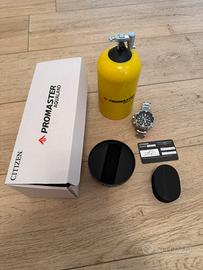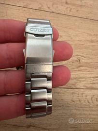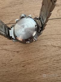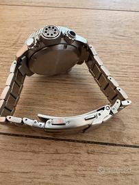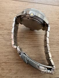 Cassa in acciaio con corone e pulsati serrati a vite. Ghiera girevole unidirezionale. Bracciale in acciaio con chiusura di sicurezza e sistema sliding per l'indossabilità.