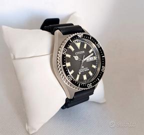 Orologio CITIZEN promaster ref. NY0120-01E pari al nuovo, completo di scatolo, bombola e garanzia. MOVIMENTO: automatico Cal.8204 CASSA: acciaio diam. 41mm QUADRANTE: nero sfumato GHIERA: girevole unidirezionale CINTURINO: originale in poliuretano nero NON SPEDISCO CON TUTTOSUBITO Per ulteriori info o foto potete contattarmi su WhatsApp al numero 3888903655