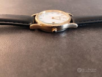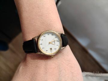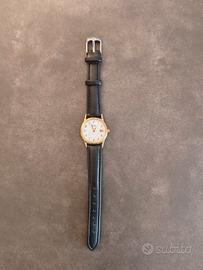 Vendo raffinato orologio Citizen al quarzo, stile classico e intramontabile. Quadrante bianco con numeri arabi neri per una leggibilità perfetta e datario a ore 3. Cassa dorata con corona impreziosita da pietra nera (cabochon). Cinturino nuovo in similpelle nera. Fondello in acciaio serrato a pressione. Funzionamento perfetto, batteria appena sostituita. Segni di usura sulla placcatura della cassa che aggiungono fascino vintage al pezzo. prezzo trattabile Scambio valutabile con Casio Seiko Citizen Orient Archs Bulova pryngeps vintage cronografo meccanico quarzo digitale o automatico anche da sistemare sempre vintage