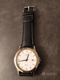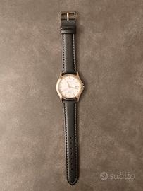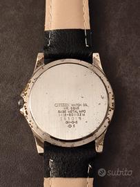 Orologio Citizen quartz da uomo vintage, diametro circa 38mm. Orologio funzionante, con batteria nuova. Quadrante bianco pulito con datario, design elegante e molto versatile. Cassa in acciaio con normali segni del tempo sul fondello, come da foto. Montato cinturino in similpelle pelle nera nuovo, pronto da indossare. ✔️ Movimento al quarzo preciso ✔️ Datario funzionante ✔️ Misura ideale (38mm) ✔️ Stile classico elegante Ottimo sia per uso quotidiano che per chi cerca un vintage affidabile. Prezzo trattabile Scambio valutabile con Casio Seiko Citizen Orient Archs Bulova Pryngeps timex tissot vintage cronografo meccanico quarzo digitale o automatico anche da sistemare sempre vintage