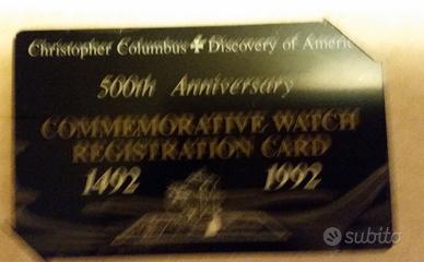 Due quadranti ognuno mette in risalto un importante momento dell'evento storico riprodotto su fondo smaltato. Il primo quadrante illustra il momento della partenza della Caravella SANTA MARIA; il secondo quadrante illustra invece la costa del NUOVO MONDO e il puntino rosso indica il luogo esatto in cui Colombo e' approdato la prima volta.