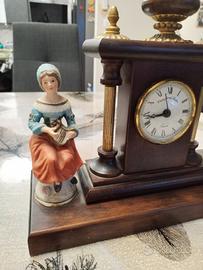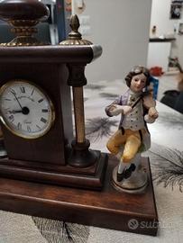 Orologio con statue in ceramica e legno anni 80 molto bello. Mis. 30x25.