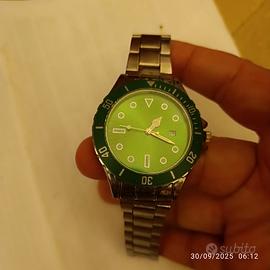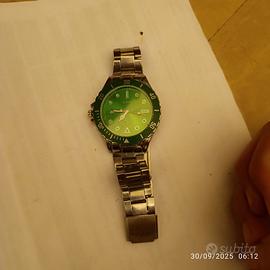 orologio con sfondo verde, mai usato. batteria nuova