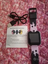 Orologio con possibilità di inserire la Sim che funge da telefono per i nostri bimbi. Ottimo per telefonare, fare foto e giocare con i giochi già istallati all'interno. Vendo causa doppio regalo.
