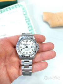 orologio Rolex GMT quadrante bianco indici Gialli soprannominato chicchi di mais appena segni di utilizzo perfettamente funzionante completo di scatola e garanzia anno 1992..