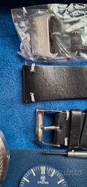 Corredo con rotolo contenitore in pelle PU - Un screwdiver per rimuovere il bracciale e regolare le dimensioni - Panno per la pulizia in microfibra personalizzato - Certificato di garanzia - 2 barre a molla di ricambio – Set lancette Plongeur – secondo quadrante di colore blu