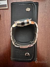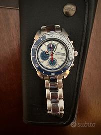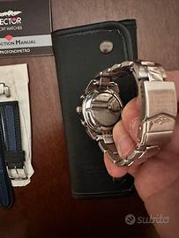 Vendo orologio crono Sector profondimetro anni 90 serie limitata con cinturino acciaio, cinturino in pelle, manuale istruzioni, confezione in pelle originale, batteria nuova. Ottimo stato