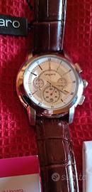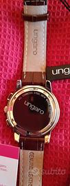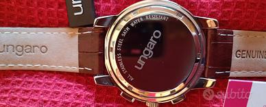 Il cronografo bianco Tiziano di Ungaro è un orologio molto maschile con una cassa grande (42,5 mm) e spessa, interamente in acciaio inossidabile. Il cinturino è in vera pelle con motivo coccodrillo. Il quadrante con tre contatori è bianco con indici cromati. La lancetta dei secondi del cronografo è rossa, aggiungendo un tocco sportivo al design. Il quadrante presenta anche un datario ad ore 6. Certificato di Autenticità e Manualetto Questo cronografo viene consegnato con la sua scatola originale Il prezzo originale di listino dell'orologio Ungaro Tiziano White (UMK1715) si aggirava intorno a 295,00 €