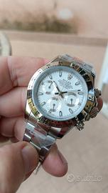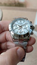 orologio crono ref. 116520 interamente in acciaio pieno. crono funzionante start/stop/reset, animato da movimento elettro meccanico ibrido Cal. VK63A Seiko (la sfera dei secondi cronografici si muove in maniera continua come negli automatici quando viene azionato il crono) , che assicurano la funzionalità dell orologio per eterno,!!! Bracciale Oyster con chiusura Oysterlock .vetro zaffiro quadrante bianco vivo con volantini argentee che rendono il Dial estremamente schik . cassa diametro 40 mm con ghiera acciaio. orologio nuovo e bello!! 130€