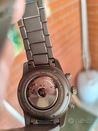 vendo orologio cronografo da collezione, originale AS Roma 1927. Automatico con meccanismo ETA 7750, carcassa e cinturino in titanio, quadrante bianco con in rilievo il Colosseo e lo stemma della Roma, serie limitata, soltanto 1927 pezzi. N. di serie 389/1927. Acquistato nel 2013 e mai indossato. È nuovissimo. prezzo trattabile.