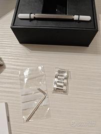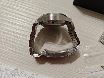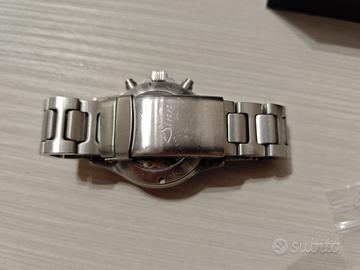 Vendo orologio Sinn 356 Flieger SA, con confezione, documento di vendita, maglie aggiuntive rimosse, cacciavite e brugole per sostituzione maglie. Il Sinn 356 Flieger SA è un cronografo automatico basato su movimento Sellita SW 500 (25 rubini, 28800 Hz/ora, identico al movimento Eta Valjoux 7750, ma antimagnetico DIN 8309) con conteggio secondi cronografo su lancetta grande, 30 minuti in alto, 12 ore in basso e secondi normali a sinistra. A destra è presente la finestra con giorno della settimana in inglese e giorno del mese. La versione del cronografo è quella con vetri anteriore e posteriore entrambi in zaffiro. Le dimensioni dell'orologio sono: Diametro cassa: 38.5 mm Anse: 20 mm Spessore: 15.6mm Altezza lug-to-lug: 45/46mm L'orologio è stato revisionato a Marzo 2025 (smontaggio totale, pulizia ad ultrasuoni, sostituzione o-ring e riassemblaggio) ed è perfettamente funzionante. L'orologio presenta dei segni di utilizzo su cassa e bracciale in acciaio (vedi foto). Il quadrante presenta dei segni in prossimitá delle lancette, dovuti ad una revisione precedente a quella di Marzo 2025. Disponibile consegna a mano in Torino e provincia e tramite tuttosubito. Il prezzo dell'orologio nuovo è di circa 2950 €, vendo a poco meno della metá.